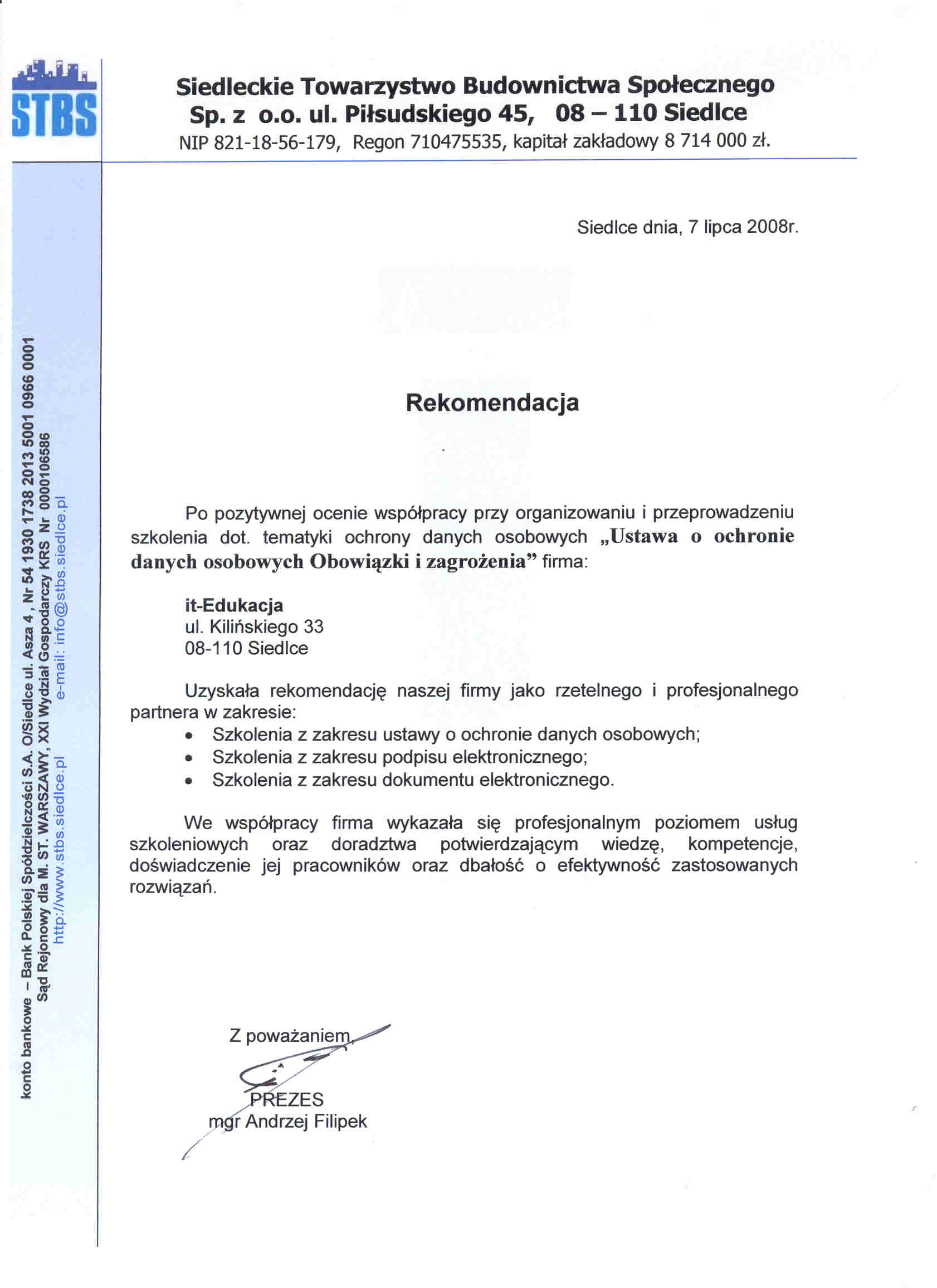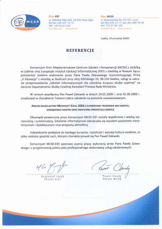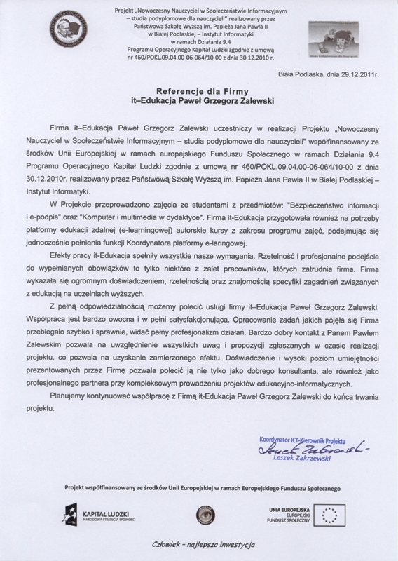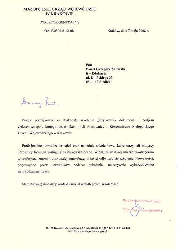 Szkolenie informatyczne "Specjalista z zakresu PKI, dokument elektroniczny,elektroniczne archiwum, polityka
